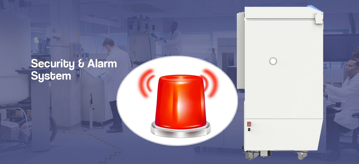 This laboratory chest freezer has an audible and visual alarm device, it works with a built-in sensor to detect the interior temperature. This system will alarm when the temperature goes high or low abnormally, the top lid has left open, the sensor doesn’t work, and the power is off, or other problems would occur. This system also comes with a device to delay turn-on and prevent interval, which can ensure working reliability. Safety door lock design, ensure safety sample storage.