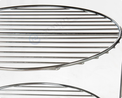 The interior storage sections of this rotating refrigerated cake display are separated by shelves that are durable for heavy-duty use, the shelves are made of chrome finished metal wire, which is easy to clean and convenient to replace.