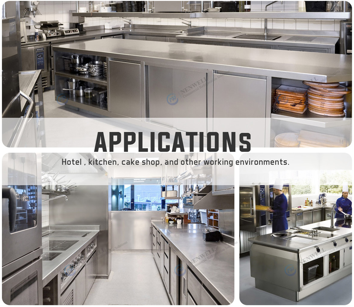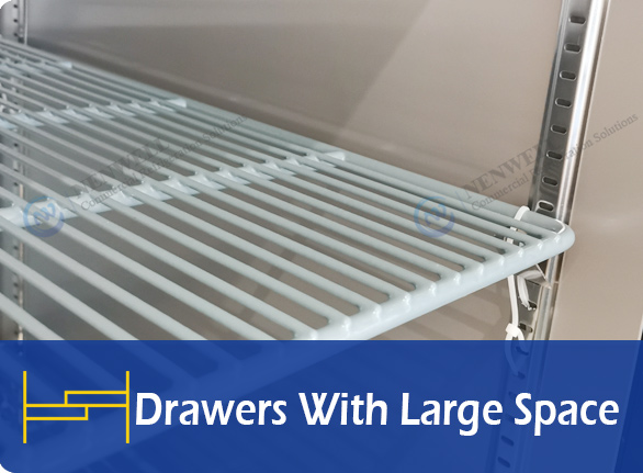 The digital control system allows you to easily turn on/off the power and precisely adjust the temperature degrees of the under worktop fridge and freezers from 0.5℃ to 5℃ (for cooler), and it also can be a freezer in a range between -22℃ and -18℃, the figure displays on a clear LCD to help users monitor the storage temperature.