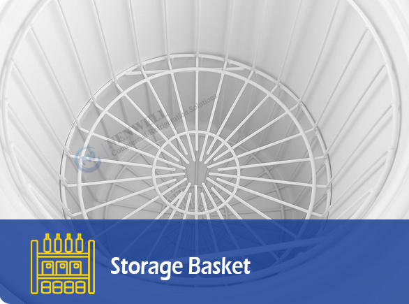 The storage area has a durable wire basket, which is made of metal wire finished with PVC coating, it is removable for easy cleaning and replacement. Beverage cans and beer bottles can be placed in it for storage and display.