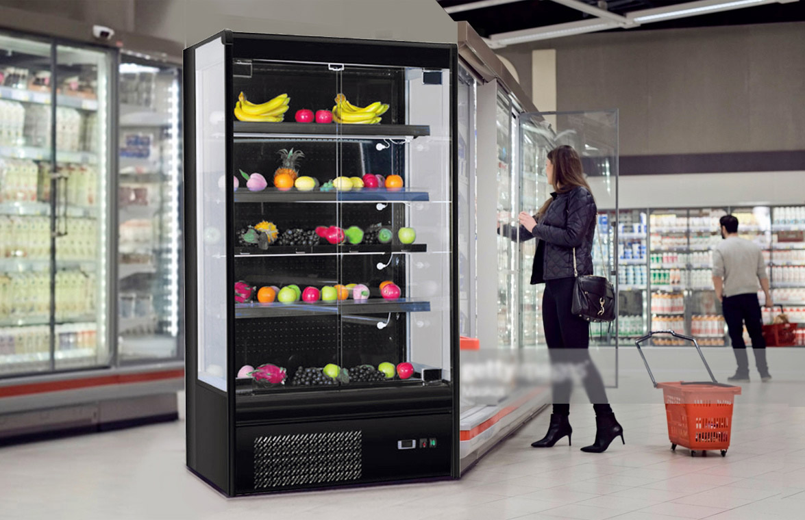 This vegetable fridge has an innovative air curtain system instead of the glass door, it can perfectly keep the stored items displayed clearly, and provide customers with a grab-and-go & convenient buying experience. Such a unique design recycles the interior cold air not to waste, making this refrigeration unit eco-friendly and utility features.