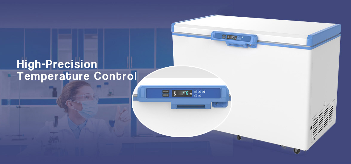 This ILR refrigerator has an audible and visual alarm device, it works with a built-in sensor to detect the interior temperature. This system will alarm when the temperature goes high or low abnormally, the top lid has left open, the sensor doesn’t work, and the power is off, or other problems would occur. This system also comes with a device to delay turn-on and prevent interval, which can ensure working reliability. The lid has a lock for preventing unwanted access.