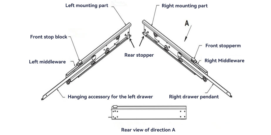 Insert the drawer, fitted with its left and right drawer hangers, into the sliding track to complete installation.